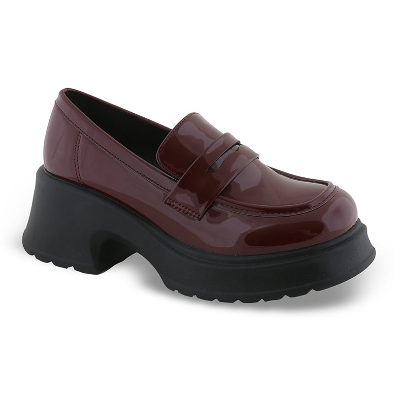 Ένα Oxford παπούτσι που συνδυάζει άνεση και fashion-forward αισθητική! Με λαμπερό λουστρίνι φινίρισμα και έντονη μπορντό απόχρωση, προσφέρει μια ξεχωριστή πινελιά σε κάθε outfit. Η χοντρή τρακτερωτή σόλα και το ιδιαίτερο block τακούνι χαρίζουν ύψος και σταθερότητα, καθιστώντας το ιδανικό για πολύωρη χρήση.