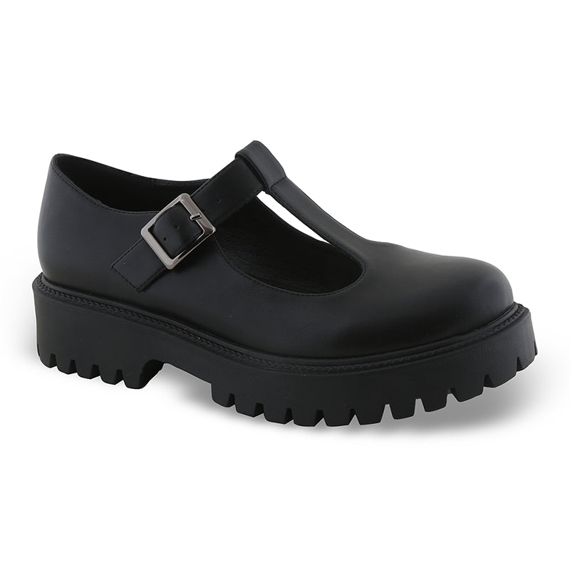 Αυτή η chunky μπαλαρίνα επανασυστήνει το κλασικό σχέδιο με μοντέρνο twist. Κατασκευασμένη από συνθετικό δέρμα, διαθέτει μπαρέτα με μεταλλική αγκράφα που χαρίζει σταθερή εφαρμογή και στιλάτη λεπτομέρεια. Η τρακτερωτή chunky σόλα προσφέρει άνεση, σταθερότητα και δυναμικό χαρακτήρα, καθιστώντας την ιδανική για looks που ξεχωρίζουν.
