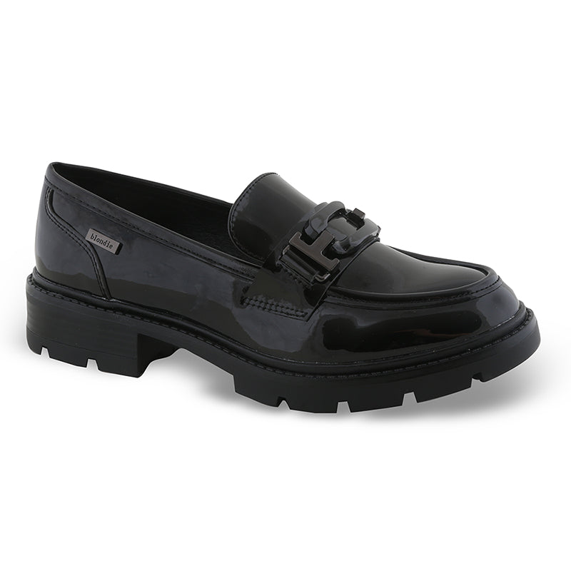 Elegant και σύγχρονο, αυτό το λουστρίνι loafer σε μαύρη απόχρωση χαρίζει λάμψη και στυλ σε κάθε εμφάνιση. Η διακριτική διακόσμηση με στρας στο επάνω μέρος προσθέτει μια glamorous πινελιά, ενώ η τρακτερωτή σόλα προσφέρει άνεση και σταθερότητα. Ιδανικό για all-day looks, από το γραφείο μέχρι τη βραδινή έξοδο.