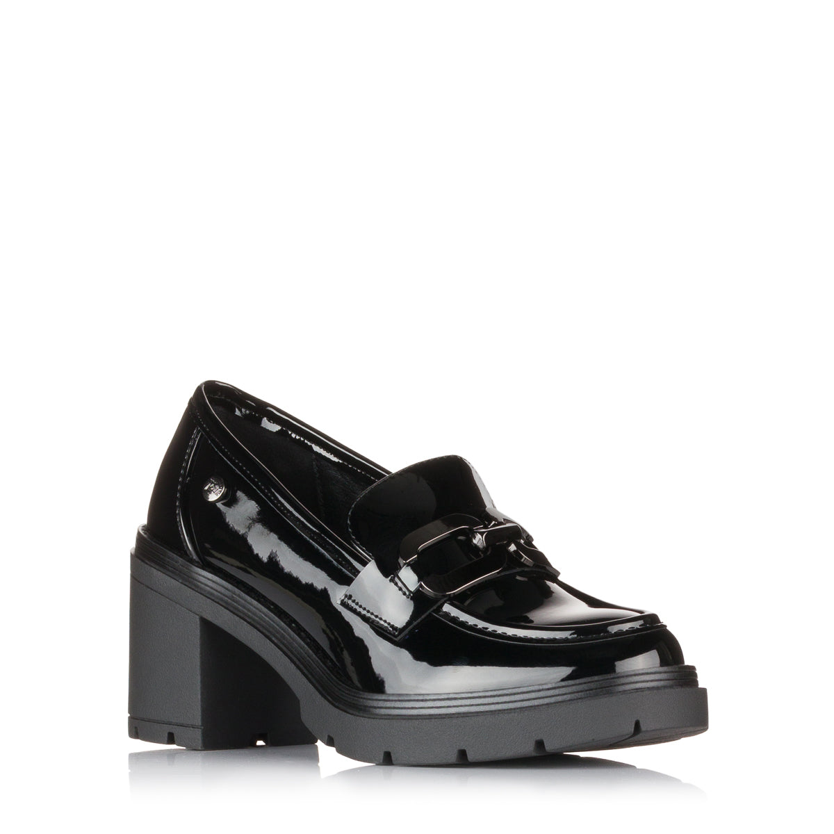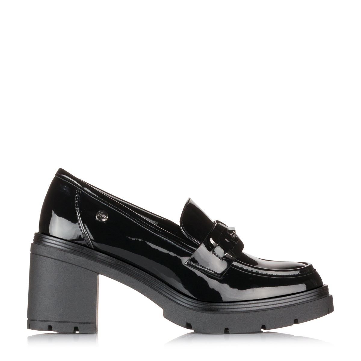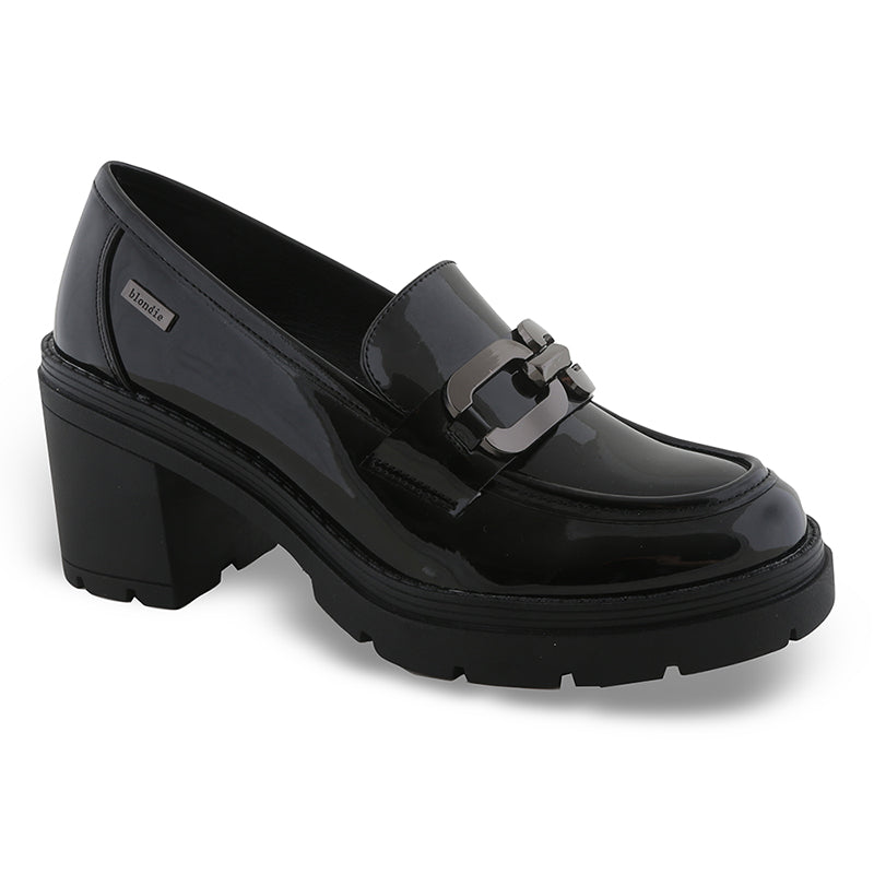 Ένα statement loafer που απογειώνει κάθε εμφάνιση! Με γυαλιστερό λουστρίνι φινίρισμα και εντυπωσιακό μεταλλικό κρίκο στο μπροστινό μέρος, αυτό το παπούτσι συνδυάζει κομψότητα και δυναμισμό. Η σταθερή τρακτερωτή σόλα και το άνετο τακούνι εξασφαλίζουν στήριξη και στυλ όλη μέρα — ιδανικό για το γραφείο ή για πιο βραδινά looks.